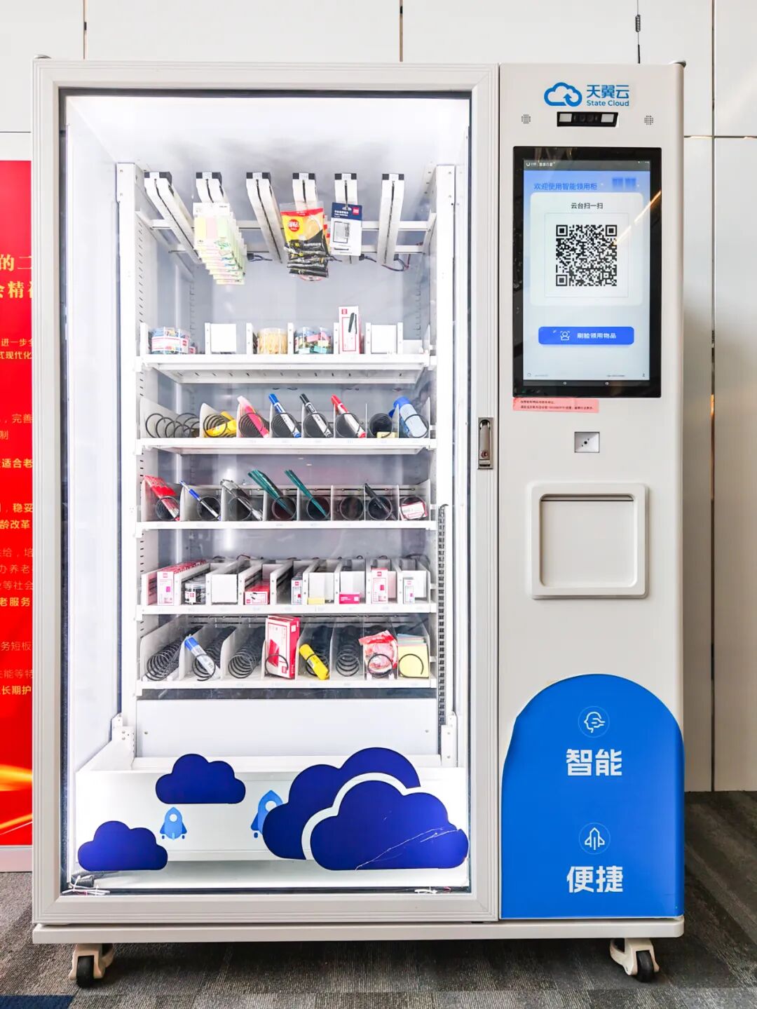 在这一趋势的推动下,小铁智慧行政的智能办公用品领用柜凭借其高效、精准的管理功能,成为众多企业的优先选择,天翼云公司便是其中之一。