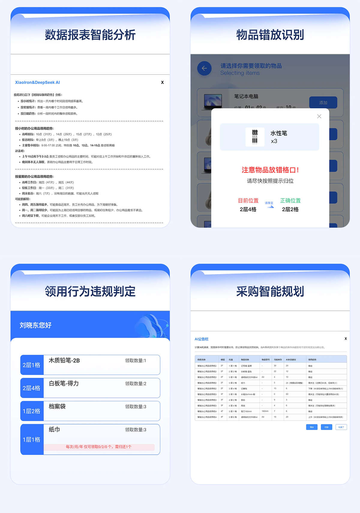 2025年,AlI浪潮席卷而至,小铁智慧行政物资管理系统接入DeepSeek R1大模型,深度整合DeepSeek R1大模型技术,助力行政管理迈向智能决策新模式。