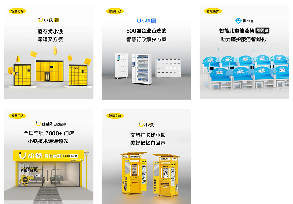 小铁科技集团汇聚了来自华为、深信服等头部企业的资深人才,拥有十年以上软硬件研发积淀,产品聚焦无人自助智能共享领域,以自主产研为优势,以“物联网+人工智能”技术为核心,深耕多元场景,致力于为用户打造便捷、安全、高效的智能共享服务新体验,旗下各产品线领跑行业。