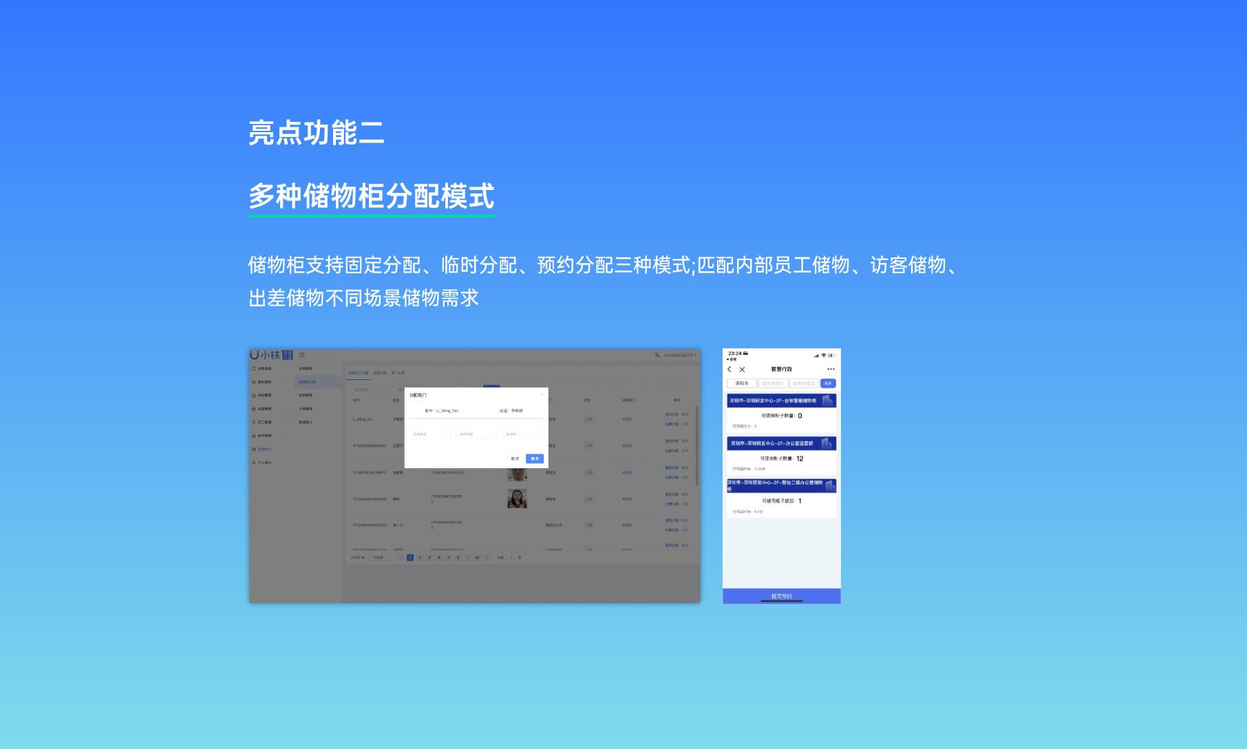 除了满足储物功能外,还拓展了部门用柜、物品交换、票据提交、拾物招领等功能,满足企业办公场景各种需求